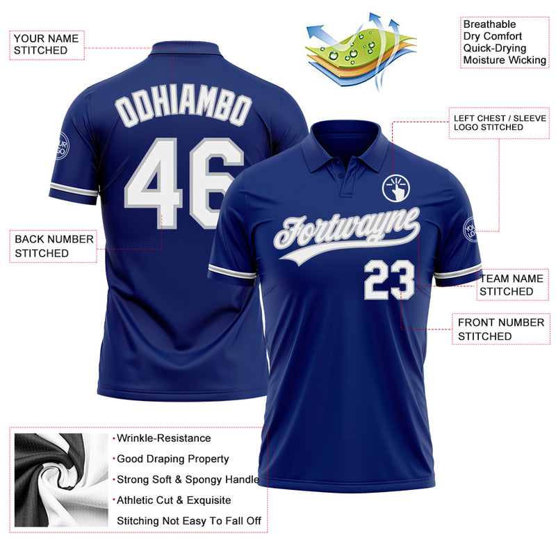 Custom Royal White-Gray Performance Vapor Golf Polo Shirt