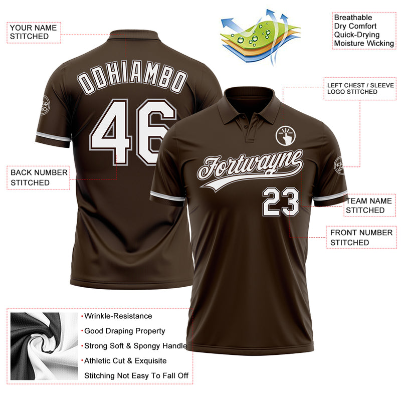 Custom Brown White-Gray Performance Vapor Golf Polo Shirt