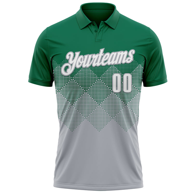 Custom Kelly Green White-Gray 3D Gradient Square Shape Performance Polo Shirt