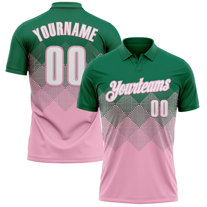 Custom Kelly Green White-Light Pink 3D Gradient Square Shape Performance Polo Shirt