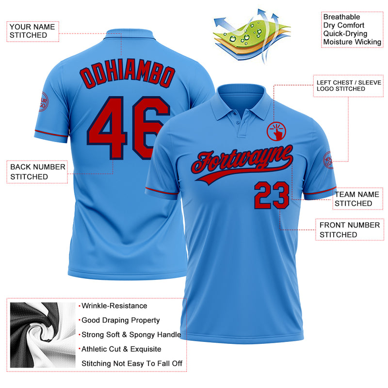 Custom Powder Blue Red-Navy Performance Vapor Golf Polo Shirt