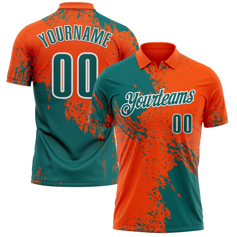 Custom Teal Orange-White 3D Pattern Design Abstract Brush Stroke Performance Polo Shirt