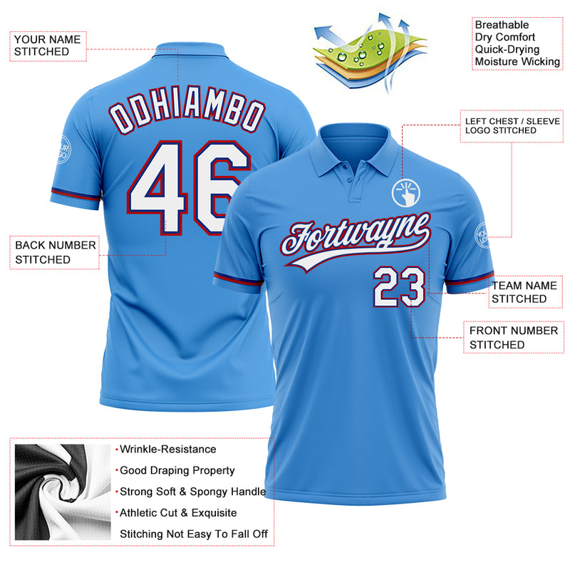 Custom Powder Blue White Royal-Red Performance Vapor Golf Polo Shirt