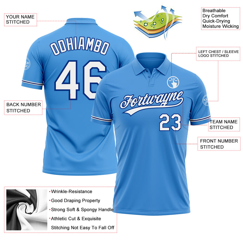Custom Powder Blue White-Royal Performance Vapor Golf Polo Shirt