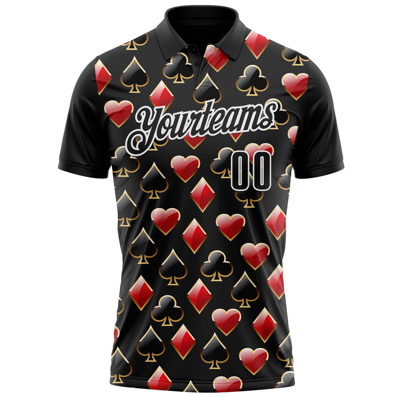 Custom Black White 3D Gambling Poker Performance Polo Shirt