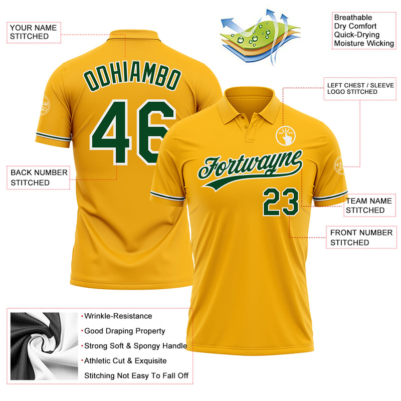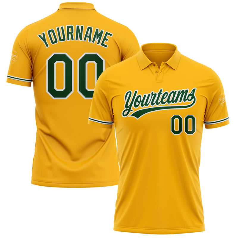 Custom Gold Green-White Performance Vapor Golf Polo Shirt