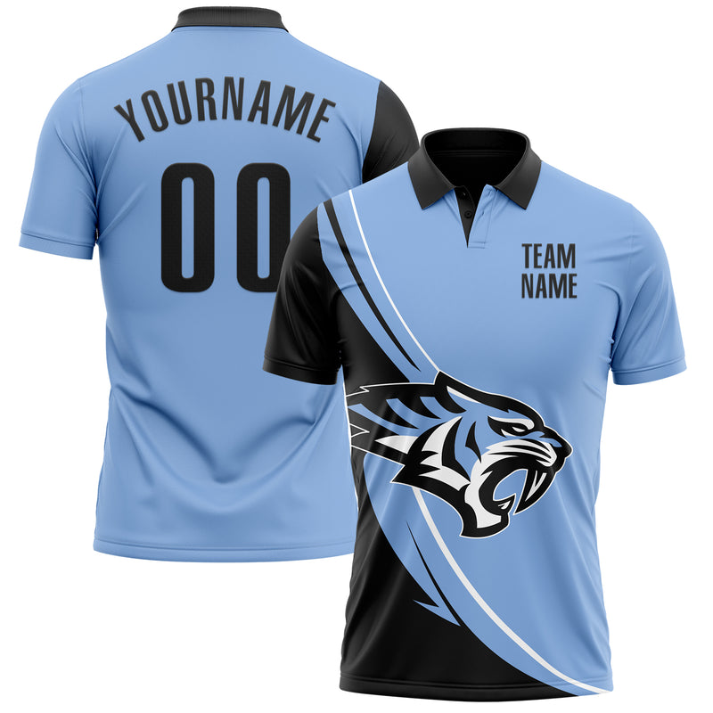 Custom Light Blue Black-White 3D Pattern Design Animal Tiger Performance Polo Shirt