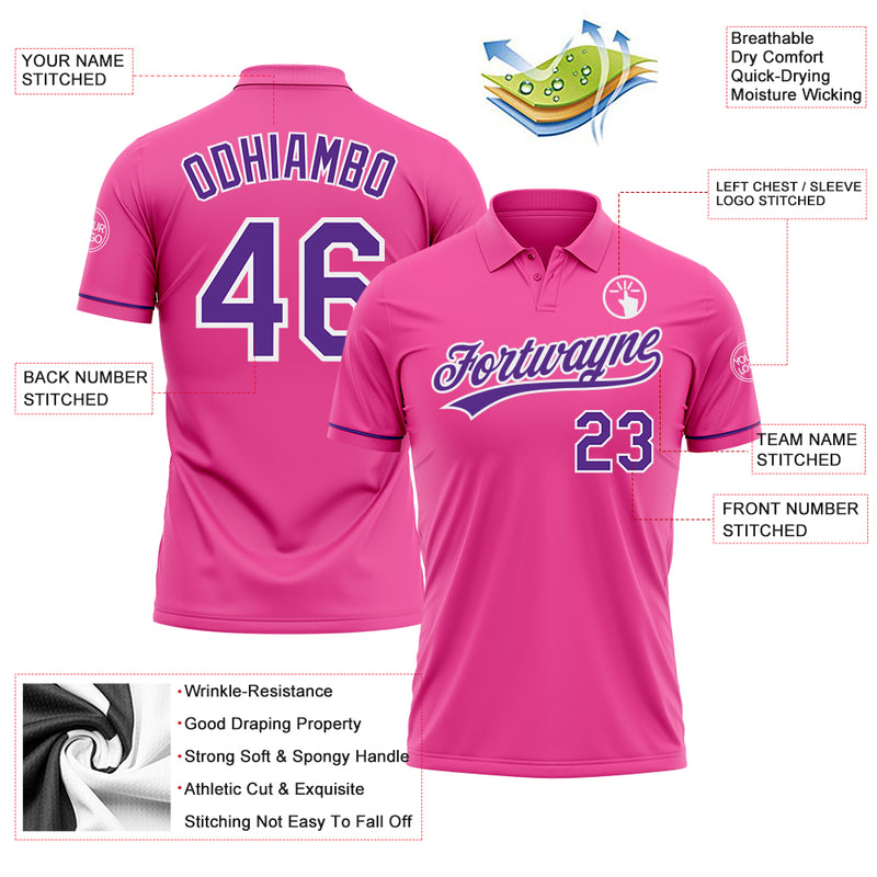 Custom Pink Purple-White Performance Vapor Golf Polo Shirt