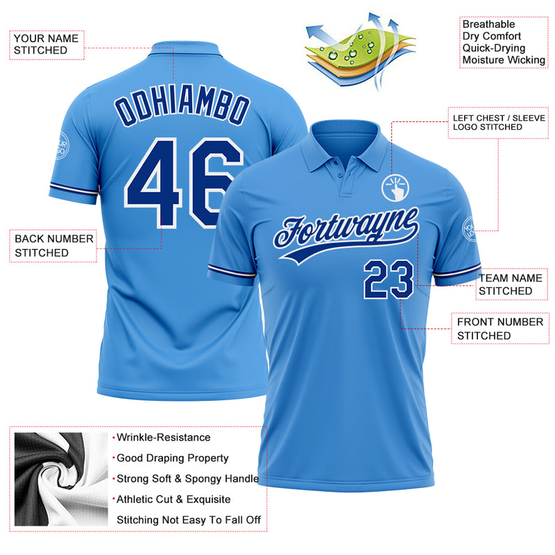 Custom Powder Blue Royal-White Performance Vapor Golf Polo Shirt