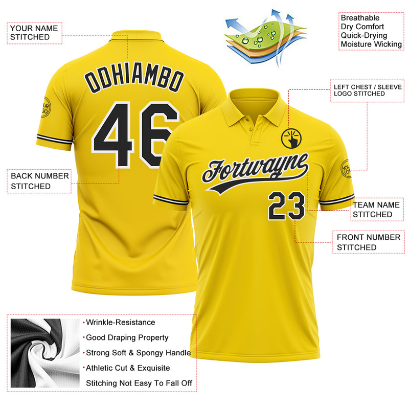 Custom Yellow Black-White Performance Vapor Golf Polo Shirt