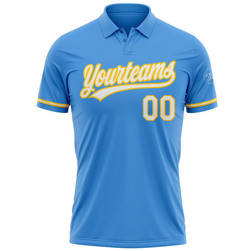 Custom Powder Blue White-Yellow Performance Vapor Golf Polo Shirt