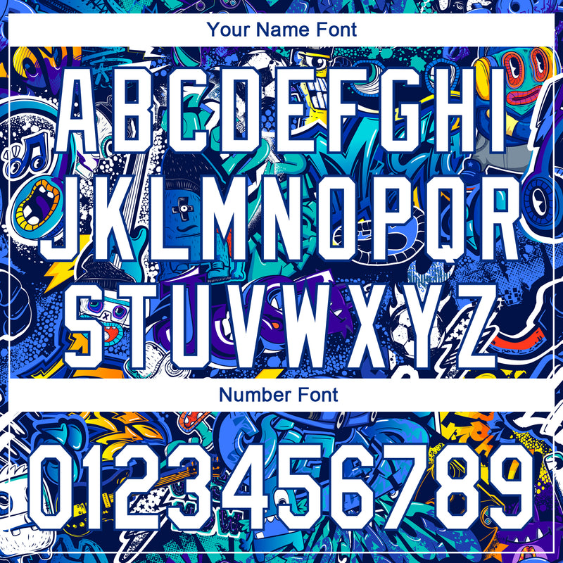 Custom Graffiti Pattern White-Royal 3D Performance Golf Polo Shirt