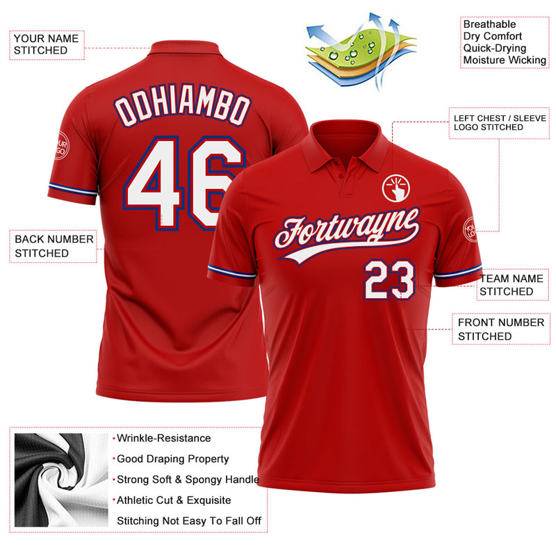 Custom Red White-Royal Performance Vapor Golf Polo Shirt
