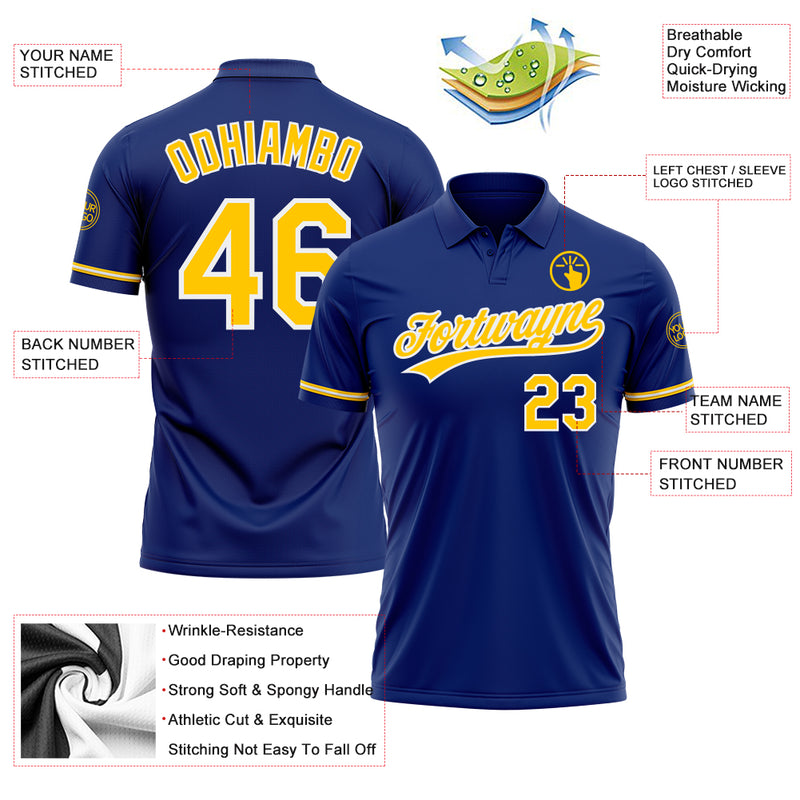 Custom Royal Yellow-White Performance Vapor Golf Polo Shirt