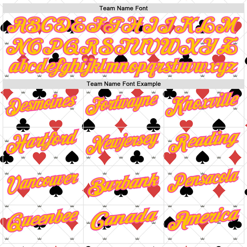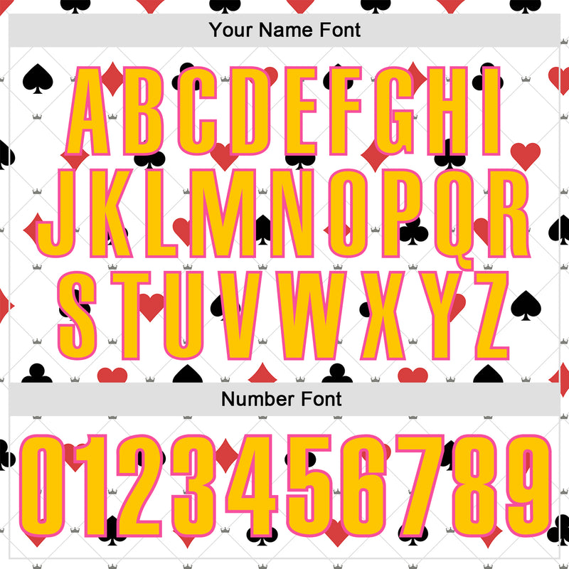 Custom White Yellow-Pink 3D Gambling Poker Performance Polo Shirt