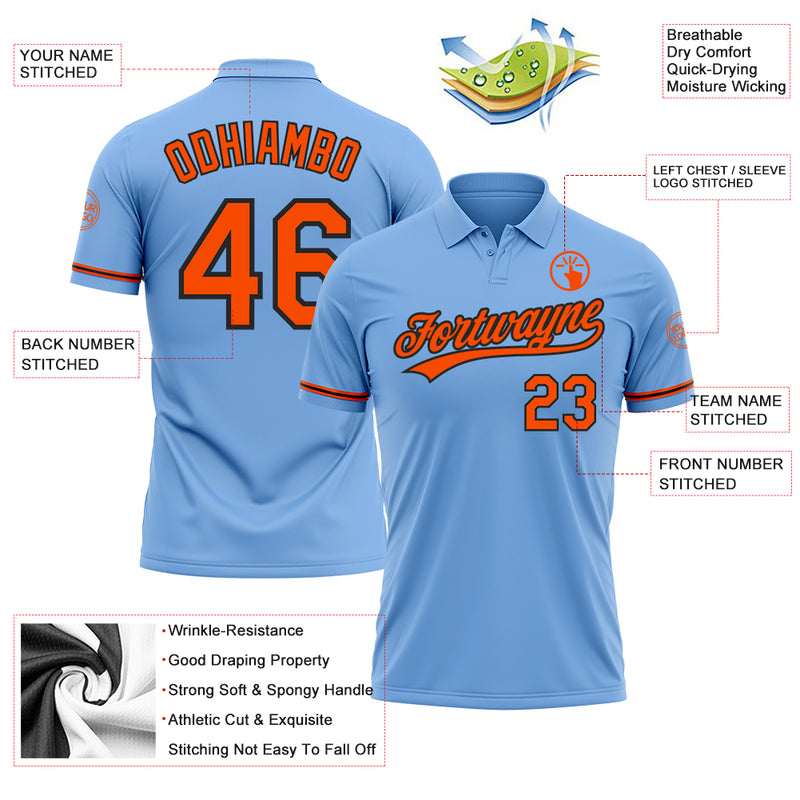 Custom Light Blue Orange-Black Performance Vapor Golf Polo Shirt