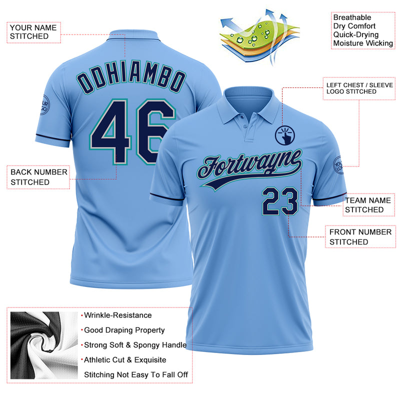 Custom Light Blue Navy Gray-Teal Performance Vapor Golf Polo Shirt