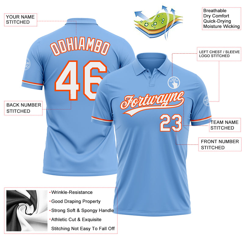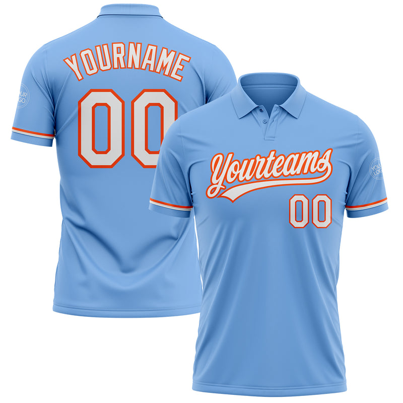 Custom Light Blue White-Orange Performance Vapor Golf Polo Shirt