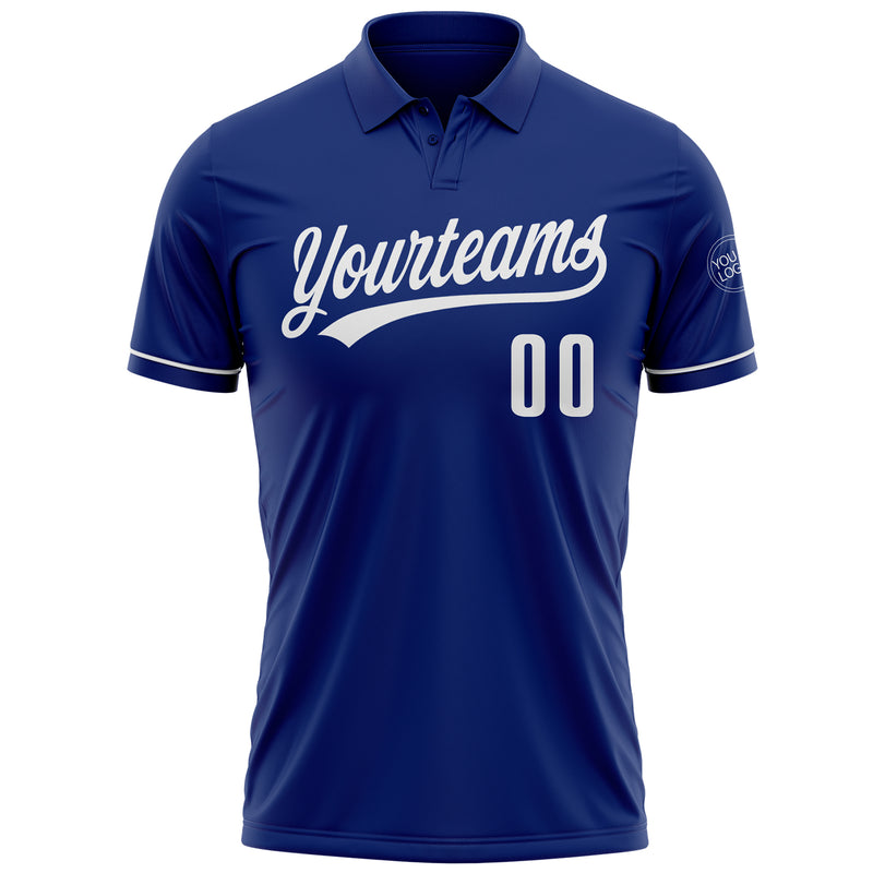 Custom Royal White Performance Vapor Golf Polo Shirt