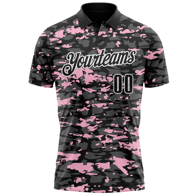 Custom Black Steel Gray Light Pink-White 3D Pattern Design Splash Performance Polo Shirt