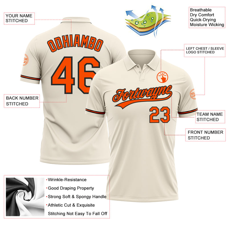 Custom Cream Orange-Black Performance Vapor Golf Polo Shirt
