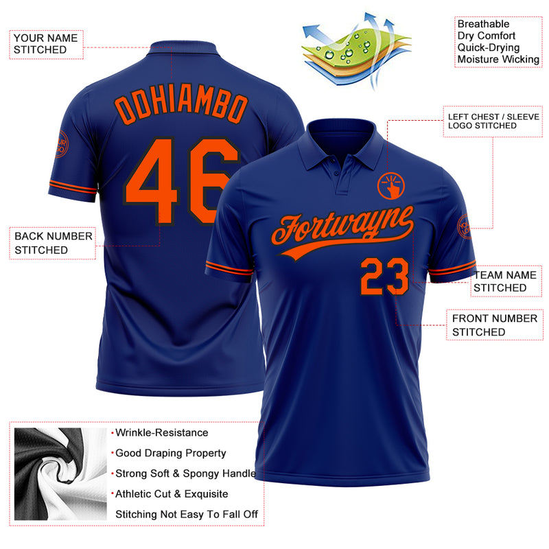 Custom Royal Orange-Black Performance Vapor Golf Polo Shirt