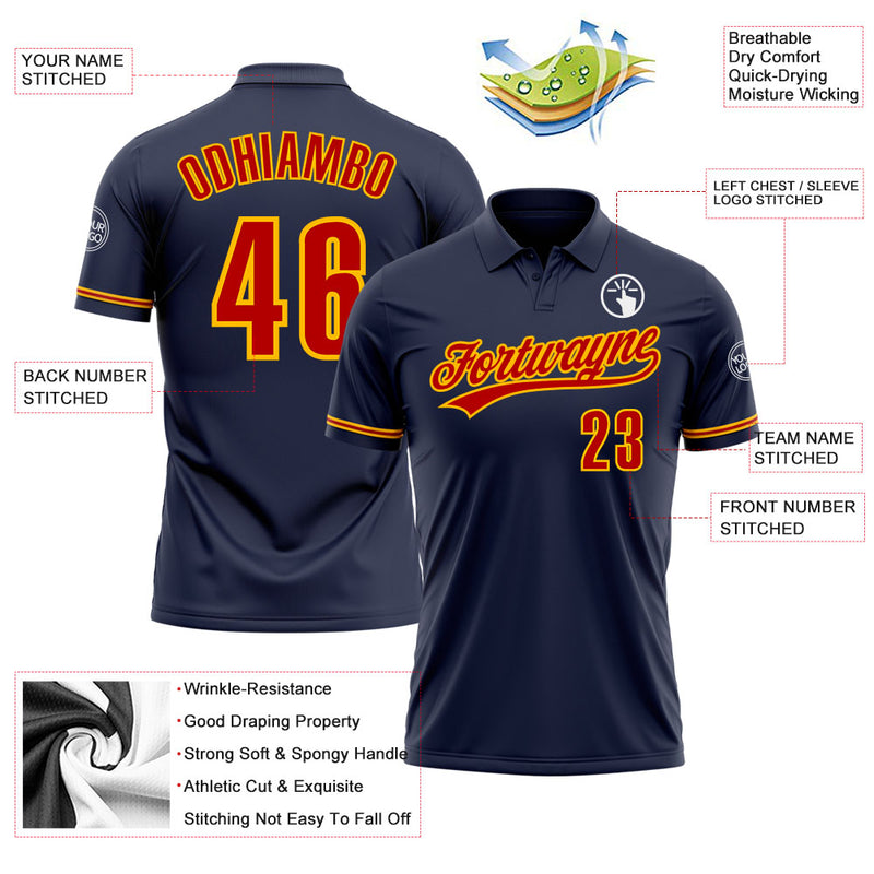 Custom Navy Red-Gold Performance Vapor Golf Polo Shirt