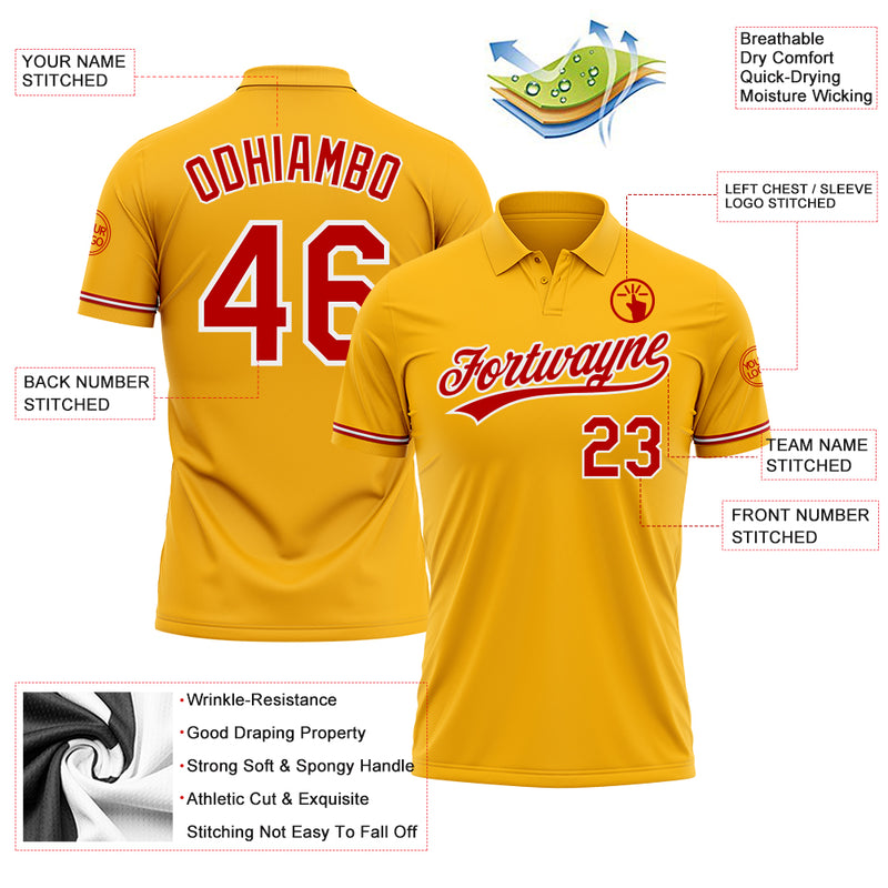 Custom Gold Red-White Performance Vapor Golf Polo Shirt