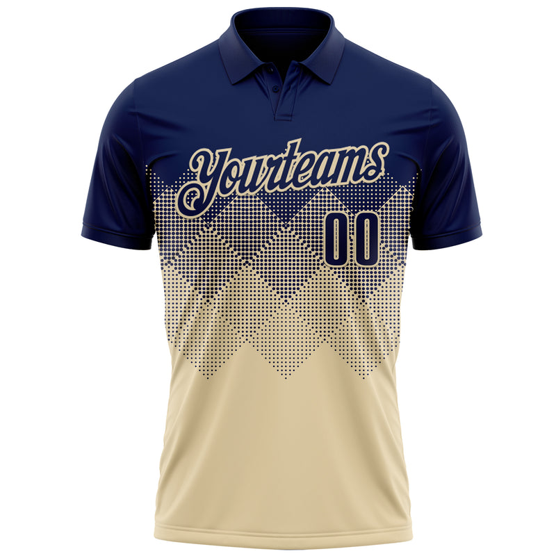 Custom Navy Cream 3D Gradient Square Shape Performance Polo Shirt