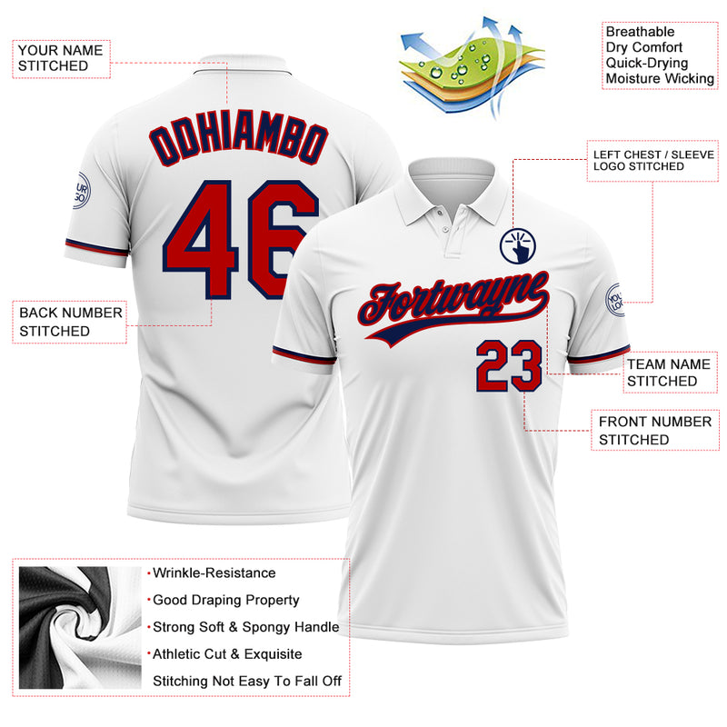 Custom White Red-Navy Performance Vapor Golf Polo Shirt