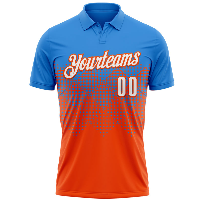 Custom Powder Blue White-Orange 3D Gradient Square Shape Performance Polo Shirt