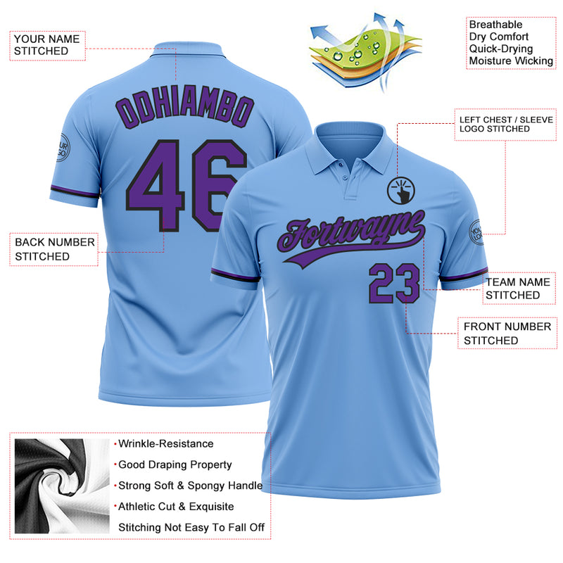Custom Light Blue Purple-Black Performance Vapor Golf Polo Shirt