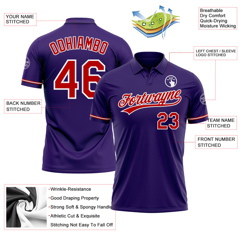 Custom Purple Red-White Performance Vapor Golf Polo Shirt