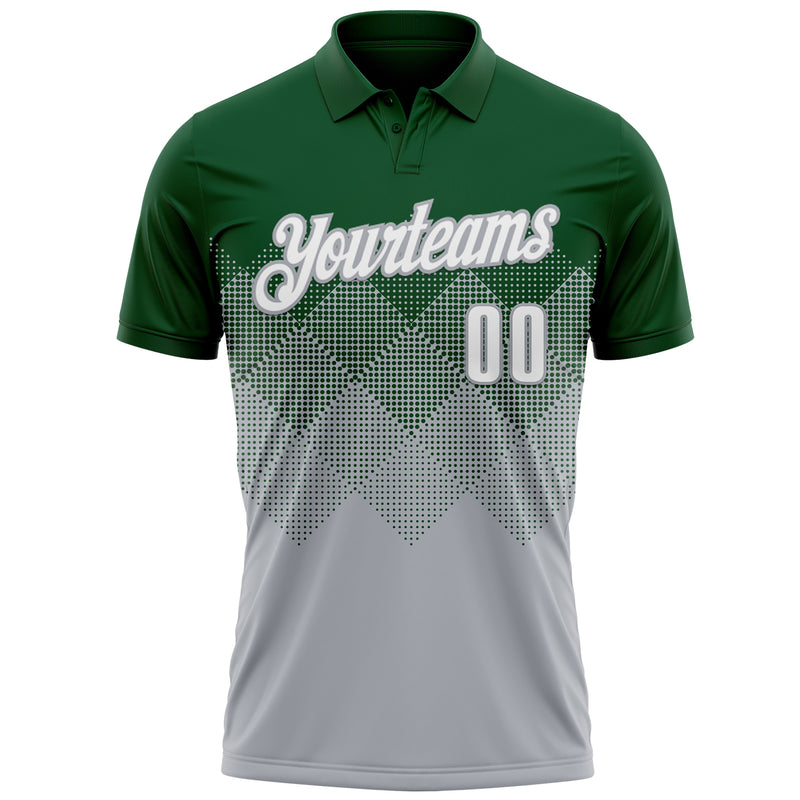Custom Green White-Gray 3D Gradient Square Shape Performance Polo Shirt