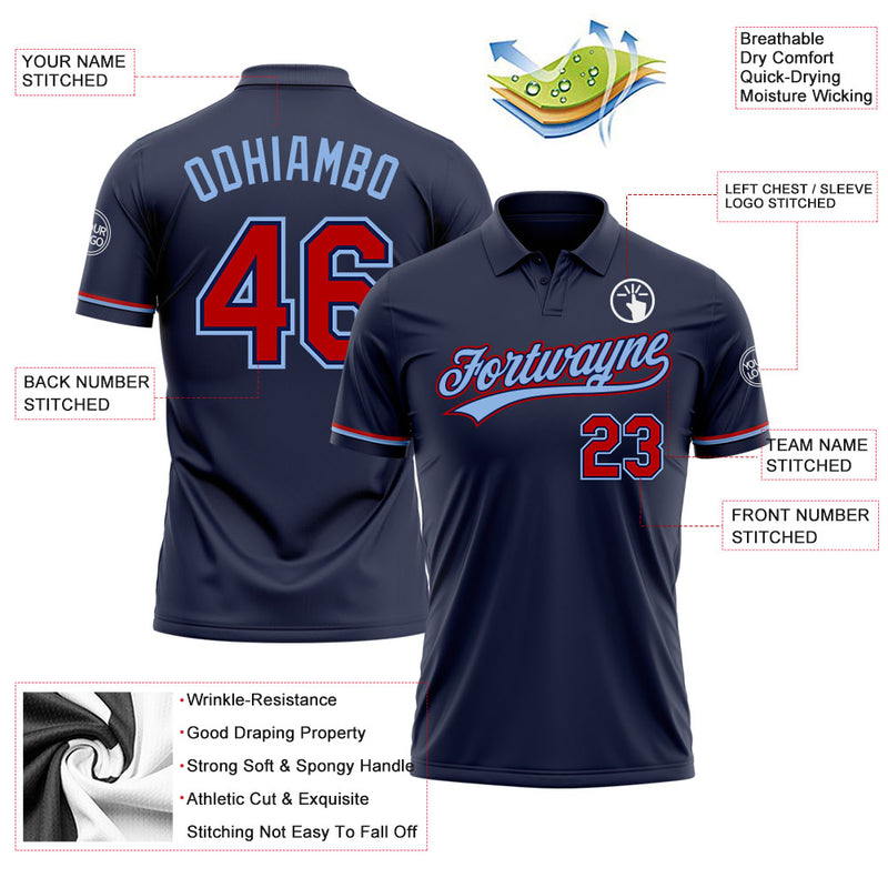 Custom Navy Red-Light Blue Performance Vapor Golf Polo Shirt