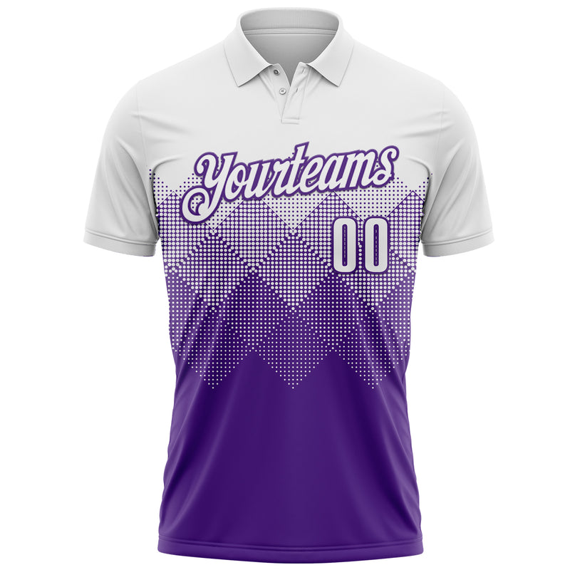 Custom White Purple 3D Pattern Design Gradient Square Shape Performance Polo Shirt