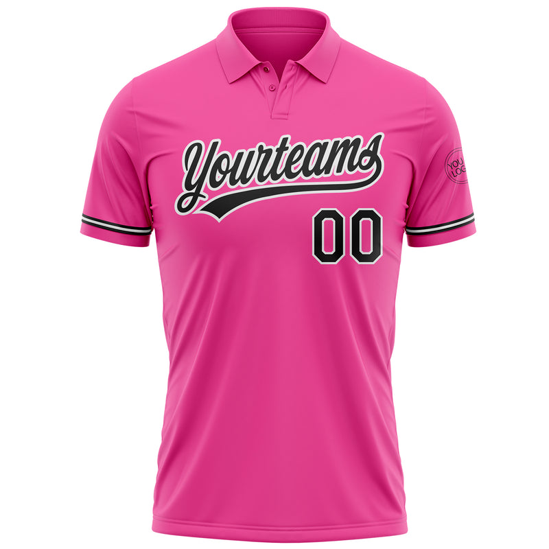 Custom Pink Black-White Performance Vapor Golf Polo Shirt