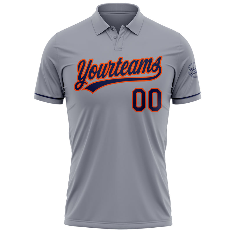 Custom Gray Navy-Orange Performance Vapor Golf Polo Shirt