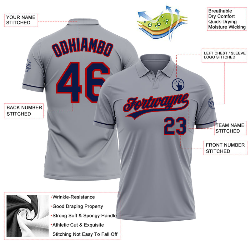 Custom Gray Navy-Red Performance Vapor Golf Polo Shirt