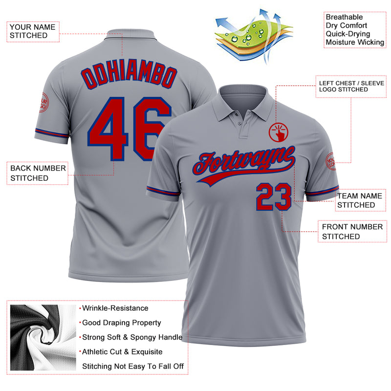 Custom Gray Red-Royal Performance Vapor Golf Polo Shirt