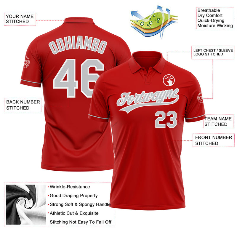 Custom Red Gray-White Performance Vapor Golf Polo Shirt