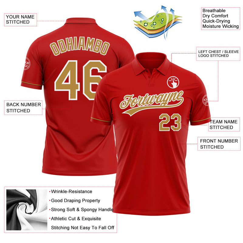 Custom Red Old Gold-White Performance Vapor Golf Polo Shirt