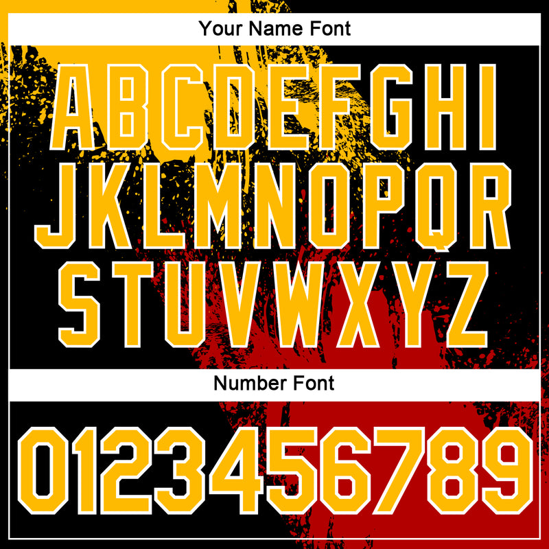 Custom Gold Black-Red 3D Pattern Design Abstract Brush Stroke Performance Polo Shirt