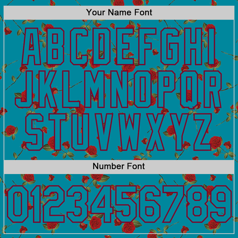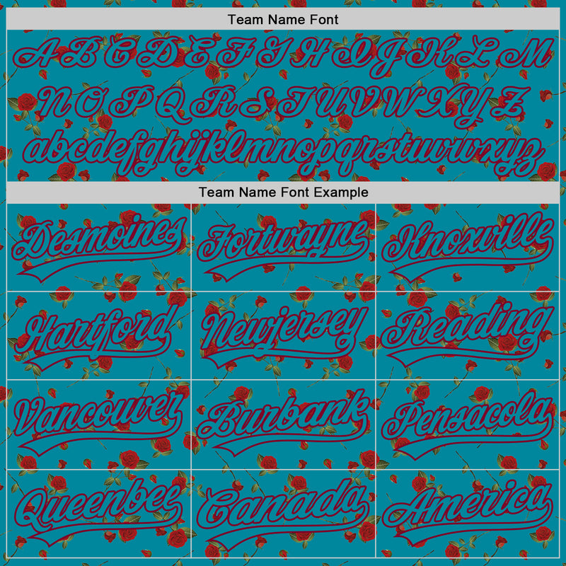 Custom Teal Maroon 3D Pattern Design Gothic Style Rose Authentic Baseball Jersey
