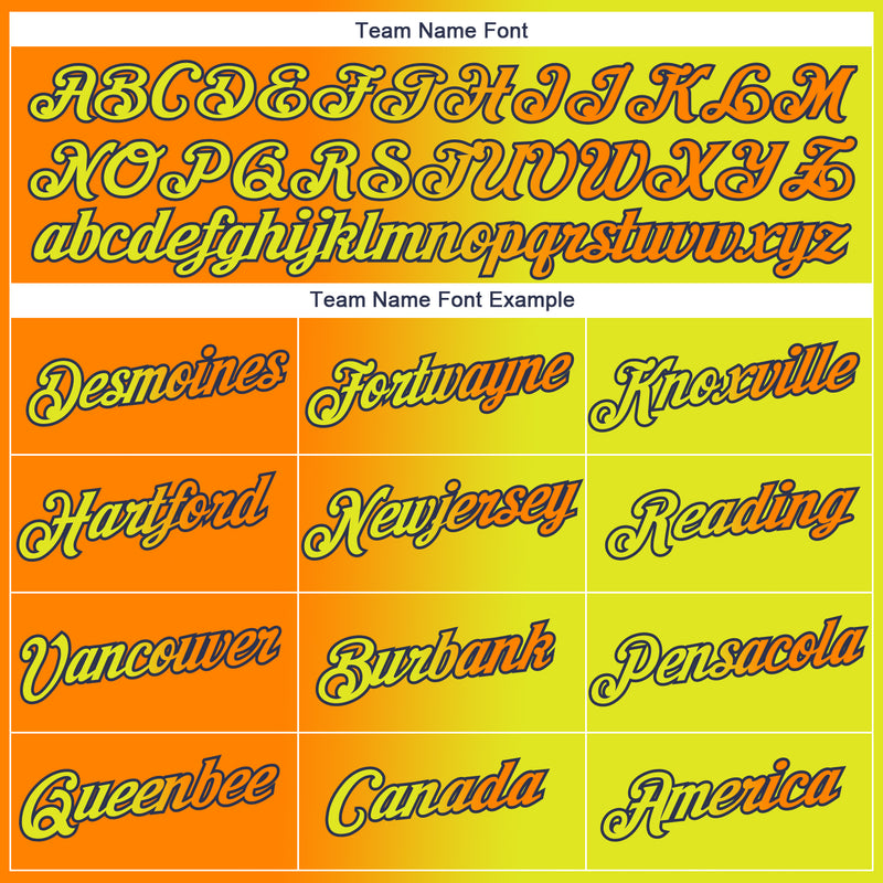 Custom Neon Yellow Bay Orange-Navy Gradient Fashion Performance T-Shirt