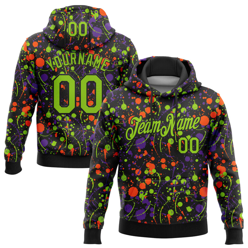 Custom Stitched Graffiti Pattern Neon Green-Black 3D Splash Grunge Art Sports Pullover Sweatshirt Hoodie