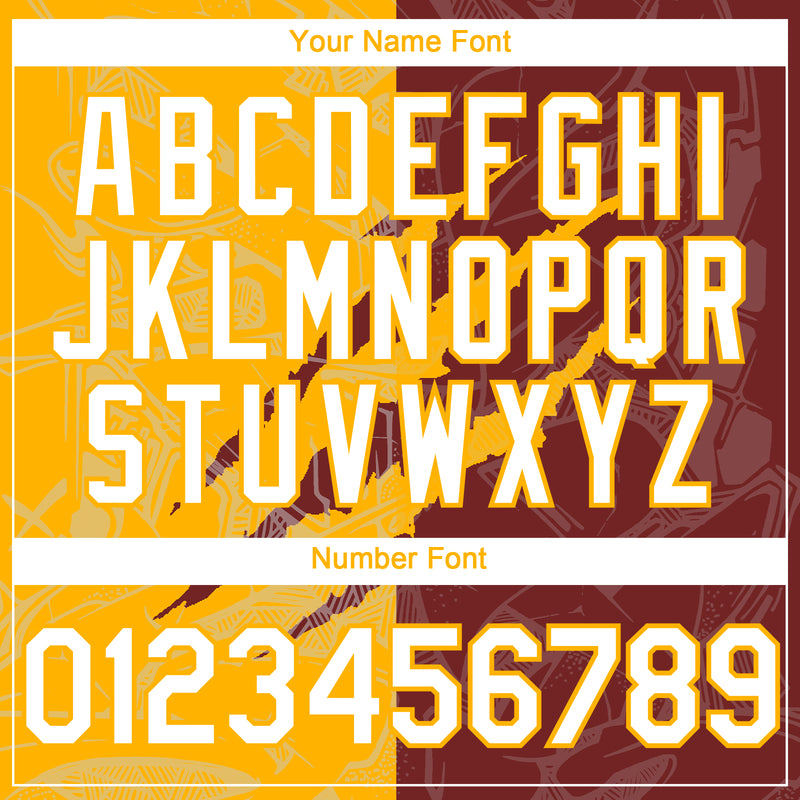 Custom Graffiti Pattern White Burgundy-Gold 3D Scratch Authentic Baseball Jersey