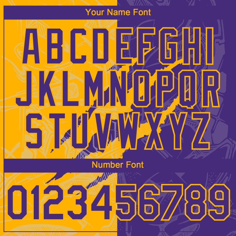 Custom Graffiti Pattern Purple-Gold 3D Scratch Authentic Baseball Jersey