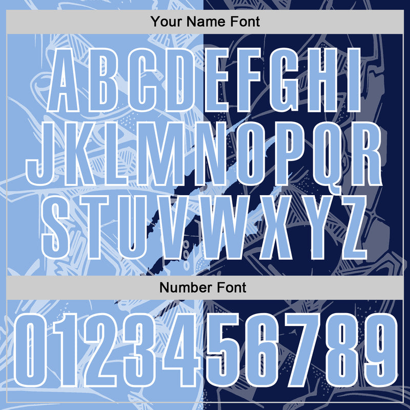 Custom Graffiti Pattern Light Blue Navy-White 3D Scratch Performance Polo Shirt