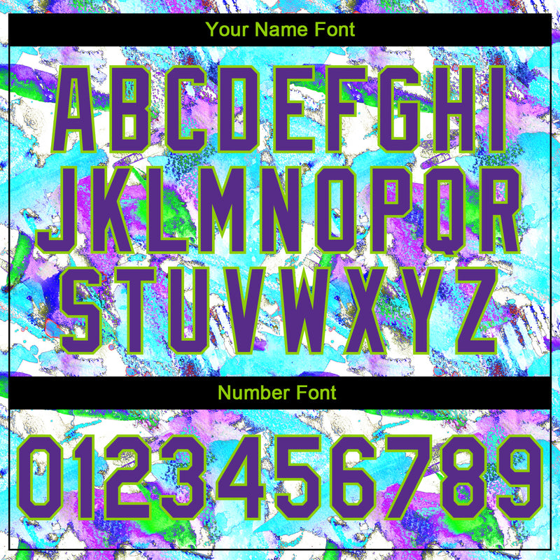 Custom Stitched Graffiti Pattern Purple-Neon Green 3D Watercolor Grunge Art Sports Pullover Sweatshirt Hoodie